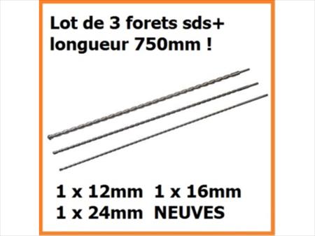 Lot de 3 forets SDS PLUS longueur 750mm ! diam 12, 16 et 24mm NEUFS