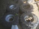 4 pneus + jantes pour chargeuse sur pneus Les jantes sont endommagées Les pneus sont pleins de caoutchouc Taille 33x15,50 - 16,5 NHS