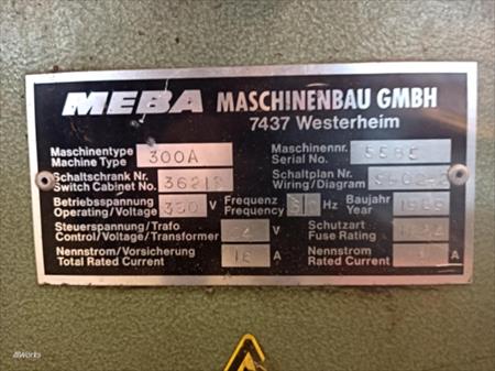 Scie MEBA 300A3x 380V - 16AAnnée 1989Avec rack à rouleaux (dimensions 590 x 65cm)En état de fonctionnement