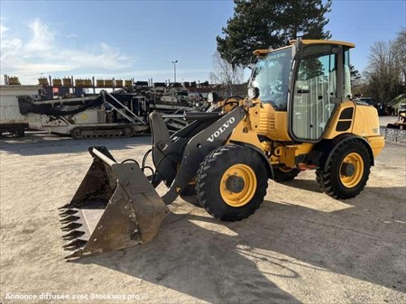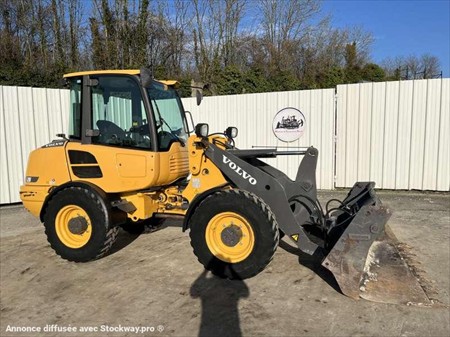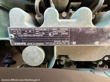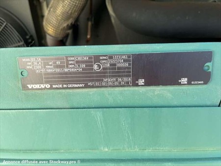 Cette chargeuse compact de la marque Volvo est le modèle L28F de 2019. Longueur : 5 M 65 Largeur : 2 M 02 Hauteur : 2 M 83 Poids : 5400 kg. Taille pneus : 405/70 R 20 Godet 4 en 1 Capacité godet : 1000 litres Clapets de sécurité Fourche Vitesse de déplacement : 20 km/h Hauteur max de déversement : 2 M 52 Moteur Volvo D3,1A de 36.4 kW (49 ch) 1917 Heures
