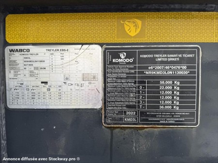 Semi-remorque Porte Engin KMD3L Komodo TrailerDate de mise en service : 24/01/2023