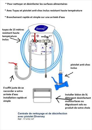 Idéal si vous avez une boulangerie, un restaurant ou tout autre commerce alimentaire ! Offre Immanquable – Centrale de Désinfection DIVERSEY monoproduit Complète à Prix Imbattable !