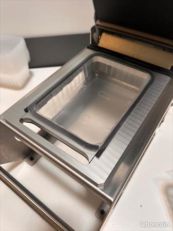 Thermoscelleuse manuelle de barquettes livrée avec un outillage double empreintes pour barquettes 192x138 et 138x96 mm.