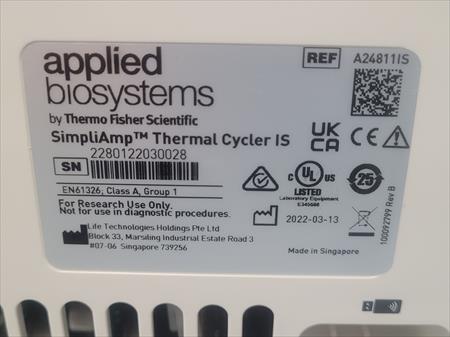 THERMOCYCLEUR APPLIED BIOSYSTEMS THERMO FISHER SCIENTIFIC SIMPLIAMP IS VERIFLOW FA-2365 APPLIED BIOSYSTEMS