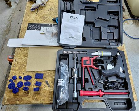 - Accessoires inclus : Chariot, Outils de débosselage, boîte de rangement,...