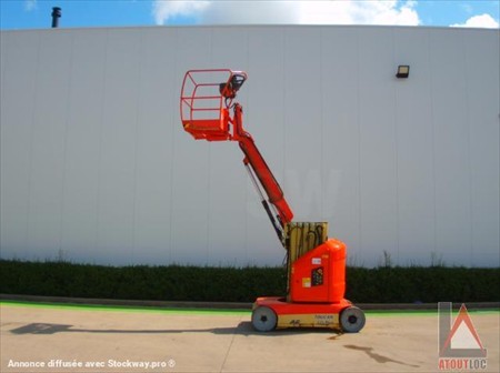 ATOUTLOC vous propose à la vente: Nacelle Verticale occasion Marque: JLG Modèle : TOUCAN 12E PLUS Année : 2019 Horamètre : 660 heures Motorisation : Electrique Ht. de travail : 12.65 m Ht. de plate-forme : 10.65 m Déport : 6.05 Capacité : 200 kg Longueur : 3.65 m Largeur : 1.20 m Hauteur : 1.99 m Poids: 4900 kg Stock : ATL-38653 Prix Hors-Taxes, départ ATOUTLOC : 29 500 € HT Contrôle Vgp inclus. Machine fournie avec certificat CE et manuel utilisateur Livraison possible Pour voir toutes nos nacelles élévatrices, rendez-vous sur notre site internet www.nacelles-occasion.fr (Nacelles ciseaux, Nacelles télescopiques, Nacelles articulées, Nacelles sur remorque, Nacelles araignées, Nacelles sur chenilles, Nacelles à mât vertical) Pour tous renseignements, n’hésitez pas à nous contacter par mail à l'adresse suivante : contact@atoutloc.fr ; ou par téléphone au 03.27.22.34.65. ATOUTLOC 223 Avenue Jules Guesde 59124 ESCAUDAIN