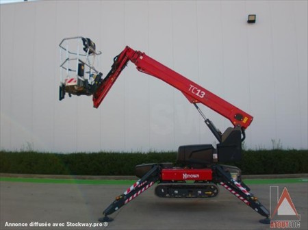 ATOUTLOC vous propose à la vente: Nacelle Araignée occasion Marque: HINOWA Modèle : TC13S Année : 2021 Horamètre : 595 heures Motorisation : Lithium Ht. de travail : 13 m Ht. de plate-forme : 11 m Longueur : 4.32 m Largeur : 1.30 m Hauteur : 1.95 m Poids: 2050 kg Stock : ATL-33844 Prix Hors-Taxes, départ ATOUTLOC : 32 950 € HT Contrôle Vgp inclus. Machine fournie avec certificat CE et manuel utilisateur Livraison possible Pour voir toutes nos nacelles élévatrices, rendez-vous sur notre site internet www.nacelles-occasion.fr (Nacelles ciseaux, Nacelles télescopiques, Nacelles articulées, Nacelles sur remorque, Nacelles araignées, Nacelles sur chenilles, Nacelles à mât vertical) Pour tous renseignements, n’hésitez pas à nous contacter par mail à l'adresse suivante : contact@atoutloc.fr ; ou par téléphone au 03.27.22.34.65. ATOUTLOC 223 Avenue Jules Guesde 59124 ESCAUDAIN