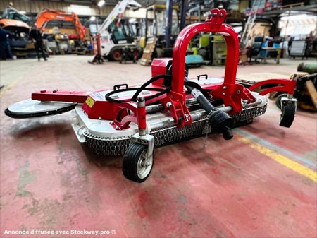 Tondeuse portée à déport hydraulique attache 3 points pour tracteur Marque GIEMME - Modèle FMU180 Année 2024 n° de série 24H024ZN Largeur de travail 230cm Transmission à cardan Dimensions des disques 60cm Entrainement des disques hydrauliques Nombre de lames : 8 (2x 4) Hauteur de coupe de 5 à 50mm Poids 330Kg Lors de sa réception, un employé qualifié de DB EQUIPMENT a effectué un contrôle des éléments essentiels du matériel, et a pu constater : son bon fonctionnement général, matériel quasi neuf. Ce matériel est disponible sur parc, et peut être essayé sur nos horaires d'ouverture sur simple rendez-vous. LIVRAISON POSSIBLE Nous nous efforçons de publier des informations les plus précises possibles mais aucun droit ne peut être tiré des textes publiés.
