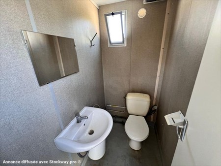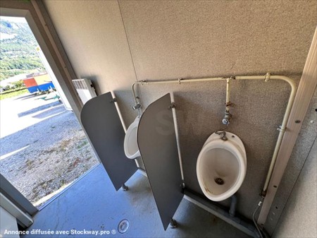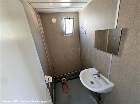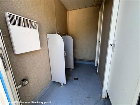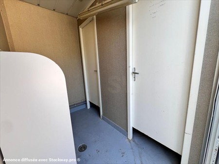 Bungalow sanitaire Ballmer N° de série 199609 Dimensions Long 3,15m x larg 2.45m x Haut 2.80m Couleur : Bleu pièce principale : 2 WC urinoirs + radiateur + prise élect + Luminaire pièce 2 : WC traditionnel + évier + cumulus + fenêtre pièce 3 : évier + miroir + fenêtre (prédisposé pour ajout d'un wc tradi) Lors de sa réception un employé qualifié de DB EQUIPMENT a effectué un contrôle des éléments essentiels du matériel et a pu constater : état propre, quelques marques extérieurs, fonctionnement électrique OK. Ce matériel est disponible sur parc et peut être visité sur nos horaires d'ouverture sur simple rendez-vous. REPRISE ET LIVRAISON POSSIBLE. Nous nous efforçons de publier des informations les plus précises possibles mais aucun droit ne peut être tiré des textes publiés.