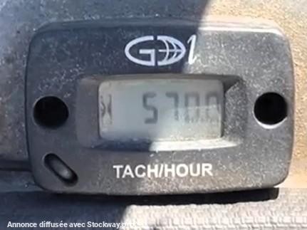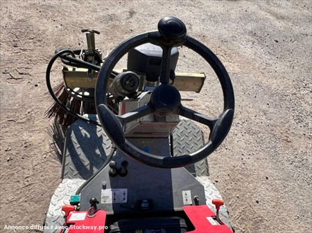 Balayeuse de désherbage automotrice Gecko (NET DE TVA) Année 2013 570 heures évolutives Moteur essence Briggs & Stratton 4 temps bicylindre 479cm³ démarrage électrique Refroidissement : Air Volume carburant : 6,5 L Puissance maxi moteur : 11,9kW / 16cv Débit hydraulique (a vitesse max du moteur) : 18 L/min Pression de l'huile hydraulique : 180 bar Poids : 350 kg Niveau d'émission sonores : 82 dB/A Vitesse d'avancement : 10 km/h Dimensions (longueur / largeur / hauteur) : Long 1,5m x larg 0,85m x Haut 1,15m Montée et descente hydraulique du bras Balai de désherbage en acier (Diam.600mm) Rotation à droite et à gauche Cuve d’eau de 40 litres Lors de sa réception un employé qualifié de DB EQUIPMENT a effectué un contrôle des éléments essentiels du matériel et a pu constater : bon fonctionnement général, très bon état Ce matériel est disponible sur parc et peut être essayé sur nos horaires d'ouverture sur simple rendez-vous. Vidéos disponibles sur demande. REPRISE ET LIVRAISON POSSIBLE. Nous nous efforçons de publier des informations les plus précises possibles mais aucun droit ne peut être tiré des textes publiés.