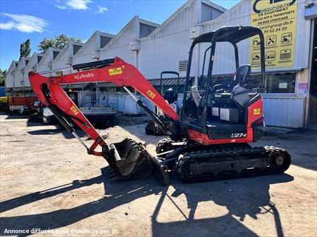 MINIPELLE 2,7T KUBOTA U27-4 CANOPY N° de série KBCU0274CKZC65304 Année 2019 - 3660 heures évolutives Poids 2565Kg 3 godets : Curage - Terrassement - Tranchée Attache rapide mécanique KLAC modèle D Dimensions : Long 4,10m x larg 1,5m x Haut 2,42m Moteur KUBOTA D1105-BH 1,12L Puissance 15,5kW / 20cv Tier 4 Final Lors de sa réception un employé qualifié de DB EQUIPMENT a effectué un contrôle des éléments essentiels du matériel et a pu constater : bon fonctionnement général, chenilles et barbotins en excellent état, testé et validé. Ce matériel est disponible sur parc et peut être essayé sur nos horaires d'ouverture sur simple rendez-vous. Vidéos disponibles sur demande. REPRISE ET LIVRAISON POSSIBLE Nous nous efforçons de publier des informations les plus précises possibles mais aucun droit ne peut être tiré des textes publiés