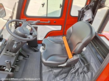 - 4 fonctions hydrauliques par leviers mécaniques - Fourches 150x50x1150 mm - Frein immergés - Echappement vertical - Poignée de klaxon arrière - Rétro panoramique - Pré-filtre cyclonique - Siège GRAMMER MSG65
