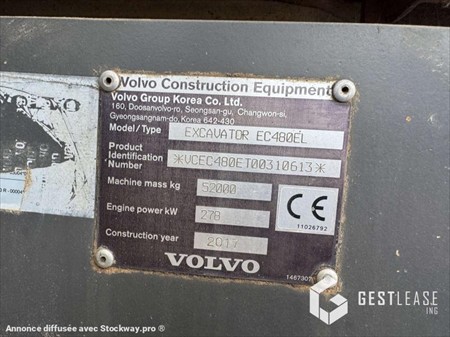 ***** ! !Matériel à réparer / /Equipment to be repaired / Zu reparierendes Material ! ***** Reference : 250519 Type : Pelle sur chenille Marque / Modèle : VOLVO EC480 EL Date de premiere mise en circulation Année : 2017 Heures au compteur : 9 520 Commentaire : Pompe hydraulique HS *****! Matériel à réparer !***** - Circonstances sinistre : Pompe hydraulique HS Matériel à réparer vendu en l’etat, vente à professionnel ou pour l’exportation. ∗!Attention, les véhicules ne peuvent faire l'objet d'aucune garantie, reprise, échange, remboursement ou réclamation à l'issue de la vente!* ∗!Please note: vehicles cannot be covered by any guarantee, trade-in, exchange, refund or claim at the end of the sale.!* Prix de vente hors taxes. Livraison possible en supplément du prix de vente. Plus d'informations et photos sur notre site internet ! Prenez rendez-vous pour que nous puissions vous recevoir dans les meilleures conditions ! Notre société, spécialisée dans l’achat et la vente, dispose d’un parc matériel de plus de 100 000 m2 au Sud de Strasbourg. Nous possédons plus de 350 matériels comprenant engins de chantier / manutention / matériel agricole / poids lourds / V.P. / V.U un stock renouvelé tous les mois. Nous aurons ainsi le plaisir de vous accueillir dans nos locaux au 17 Route d’Eschau, 67400 ILLKIRCH-GRAFFENSTADEN *Descriptif sous réserve d’erreur
