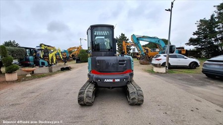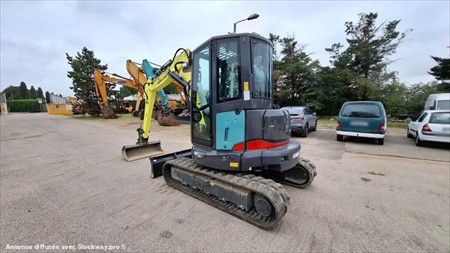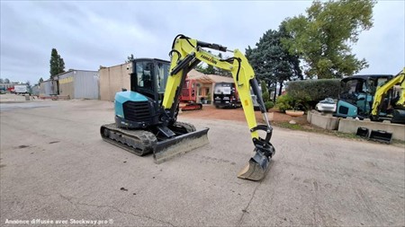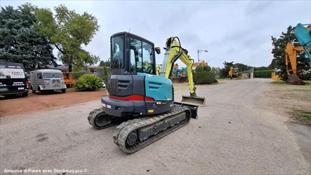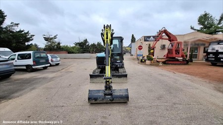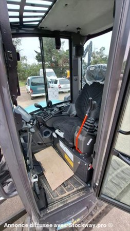 Cabine basculante ROPS / TOPS / FOPS, Climatisation et chauffage, Radio et USB, Phares de travail supplémentaires, Gyrophare, Pompe à gasoil, Lame, Chenilles caoutchoucs de 400 mm, Flèche à volée variable, Déport pied de flèche, Clapets de sécurité sur lame, flèche et balancier, Ligne BRH double effet proportionnelle, Attache rapide mécanique, 3 Godets (Tranchée, terrassement, curage inclinable)