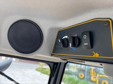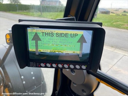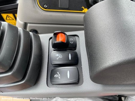 Moteur JCB Diesel Max. Stage V, 97KW/130 CV; Transmission DTVT avec vitesse rampante et accélérateur manuel; Vitesse 40Km/h; Commutateur avant/neutre/arrière (FNR); Rétroviseurs ext standard; Store pare-soleil av et ar; Eclairage intérieur LED; Alarme de recul; Phares de travail LED (2 av/2 ar); Crochet de remorquage. Roue Alliance 331 : 600/50R22.5 Cabine avec climatisation Tablier Qfit à verrouillage hydraulique Pont à glissement limité (LSD) 1 circuit auxiliaire pour tablier Qfit Language pack : inclus le français Prise de courant 12V en nez de flèche Rétroviseurs de conduite sur route Pro Pack Inclus siège pneumatique; Essuie-glace de toit; Feux LED 360° 4 avant, 4 arrière, 2 latéraux; Feux de flèche LED; Suspension de flèche (SRS); 2 gyrophares clignotants; Rétroviseurs extérieurs de luxe; Boite de rangement dans la cabine; Radio Bluetooth; Support de téléphone; Protection de transmission; Ventilateur réversible; Pompe à graisse. Homologation tracteur - sans crochet Avec freins de remorque simple ligne. Ligne hydr et électrique.