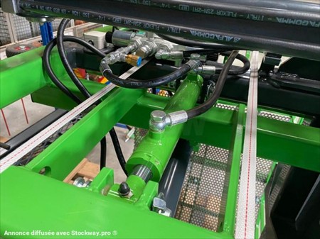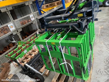 L’AVANT GreenPacker vous permet de nettoyer un box à la machine (maximum 3,34 m de large). Une fois repliés, les grappins ne mesurent que 1 m de large, ce qui vous permet de passer par une porte de 1,10 m (en fonction de la largeur de la machine). De plus, vous pouvez déplacer le GreenPacker latéralement et utiliser le laser pour le positionner au milieu du box. Les bras télescopiques permettent en outre une ouverture des grappins jusqu’à 3,34 m. Grâce aux butoirs en caoutchouc, vous poussez le fumier vers l’avant pour ensuite le ramasser en refermant le GreenPacker. Ce collecteur de fumier vous permet de nettoyer votre box en un rien de temps et d’évacuer ensuite la paille vers le tas de fumier.