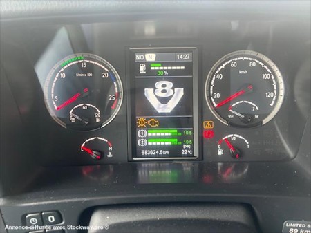 SCANIA R580 V8 - Ralentisseur - Euro 6c - Remorquant - - N3G - 684 000 km - Intérieur cuir - Clim de nuit Becool - Camera de recul - une couchette - Frigo -Boite à vitesses séquentielle - Régulateur - Suspension lames avant et arrière - Grue Palfinger Epsilon M12Z avec joystick - Plateau 5.5m - 4 ranchets possibles - Tablier Alu - Grappin pour bout d'un mètre - Turbo - FAP et butée d'embrayage récent