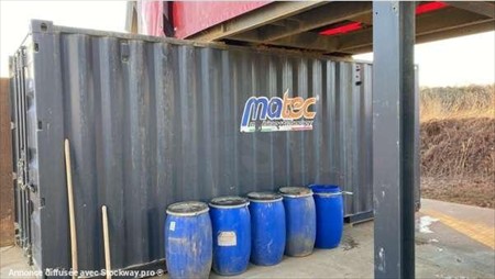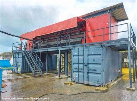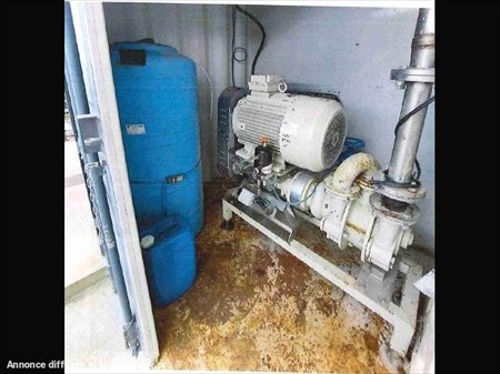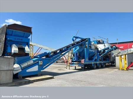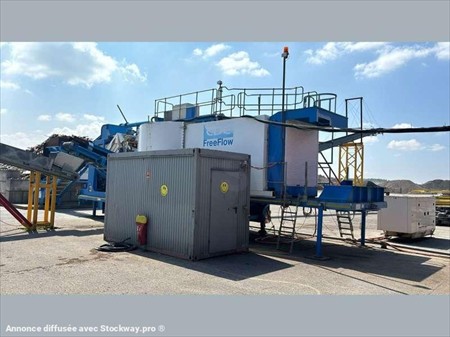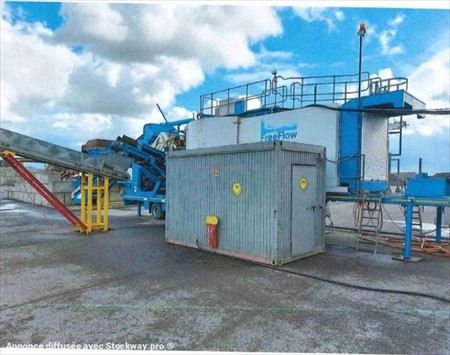 Installation de lavage FreeFlow : Marque : CDE Année de fabrication : Avril 2016 Alimentation électrique : 380-420 V, 50-60 Hz, 42.5 kW, 61 kva Générateur de puissance : 100 kva Volvo Penta Disjoncteur principale : 160 A Masse totale : 20 500 kg Nombre d'heures de fonctionnement : 5300 heures Filtre presse : Marque : MATEC Modèle Ignis FPIOOO/110NewTT2 Année de fabrication : 2019 Alimentation 400 V, 50 Hz (générateur non fourni) Dimensions des plateaux : 1000 x 1000 mm Nombre : 110 plateaux Masse totale : 20 200 kg Nombre de cycles : 9500 u Convoyeurs : Marque : COVEYA Modèle : Easikit 600 Longueur : 25.50 m Nombre de convoyeurs : 2 Unité de Floculation : Container 4m x 2 m Unité de floculation (pompes, réservoir de préparation de floculant Container 1 : Dimensions : 6 m x 2.50 m Compresseur d'air Atlas Copco Pièces de rechange Masse : 11 000 kg Container 2 : Dimensions : 6 m x 2.50 m Pompe à boue centrifuge Bassin des boues 2 agitateurs Masse : 9 000 kg 2 sauterelles de chargement : Poids 5000 kg Longueur 12 M 50 Largeur 2 M 50 Hauteur 2 M 50 Presse a boue Matec Hauteur 2 M 90 Longueur 13 M 60 Largeur 2 M 50 Poids 20.5 Tonnes