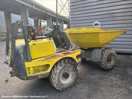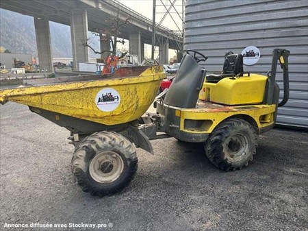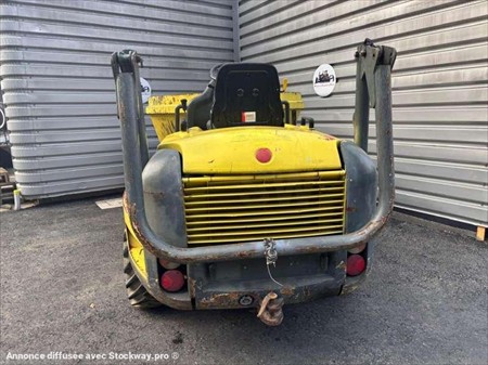 Ce mini dumper de la marque Neuson est le modèle 4001 de 2006. Longueur : 4 M 20 Largeur : 1 M 80 Hauteur : 1 M 86 Poids : 2640 Kg. Taille pneus : 11.50/80-15.3 PTAC : 6220 kg Charge utile : 3800 kg Vitesse de déplacement : 21 km/h Capacité de la benne : 1,65 M3 Moteur Yanmar 4TNV88-K de 35 kW (48 ch) 4.254 Heures