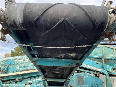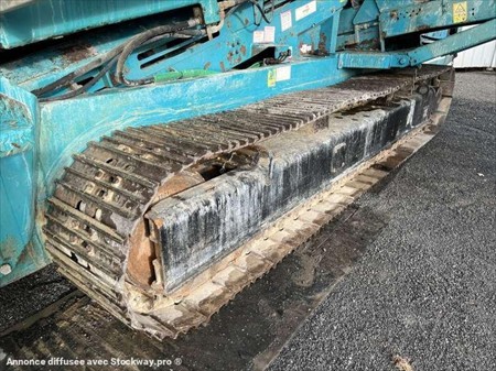 Cette cribleuse de la marque Powerscreen est le modèle Warrior 1800 de 2008. Longueur : 15 M 30 Largeur : 2 M 96 Hauteur : 3 M 45 Dimensions de travail : Longueur : 14 M 30 Largeur : 12 M 60 Hauteur : 4 M 57 Poids : 30 T. Crible à deux étages Largeur chenilles : 500 MM Convoyeur latéral pour fines : bande de 90 CM Convoyeur latéral pour les moyens : bande de 90 CM Convoyeur arrière pour les refus : bande de 1 M 40 Convoyeur d'alimentation en caoutchouc : bande de 1 M 30. Moteur Caterpillar C4.4 de 83 kW (113 ch) 8.020 Heures