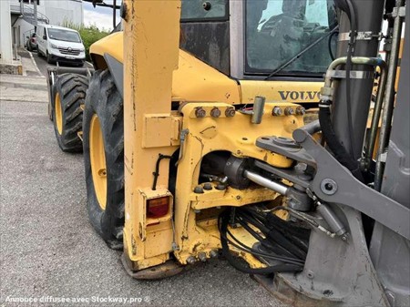Ce Tractopelle de la marque Volvo est le modèle BL71+ Power Shift de 2008.Longueur avec bras déplié pour transport : 8 MLargeur : 2 M 35Hauteur cabine : 2 M 87Hauteur à l’échappement : 3 M 02Poids : 9437 kg.Taille pneus avant : 400/70-20Taille pneus arrière : 480/80 - 26Godet 4 en 1Capacité godet : 1000 litresBras télescopiqueDeux patinsClimatisationMoteur Volvo D5D CEE3 de 74.5 kW (100 ch)3.043 heures