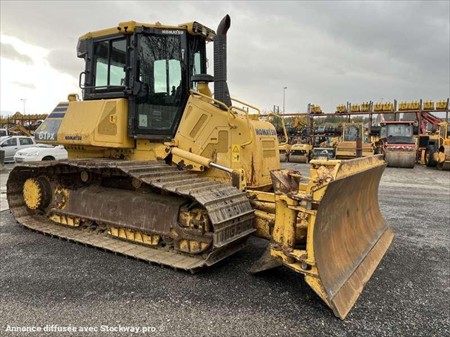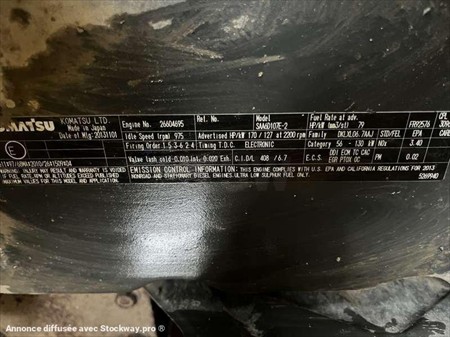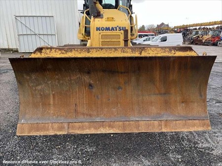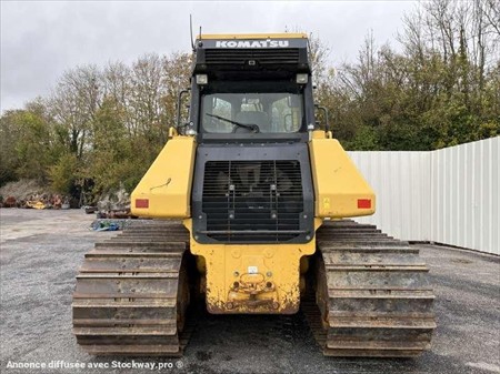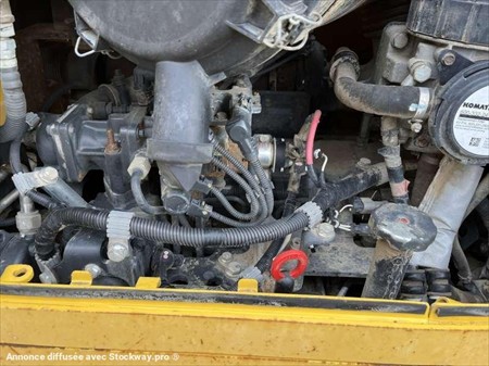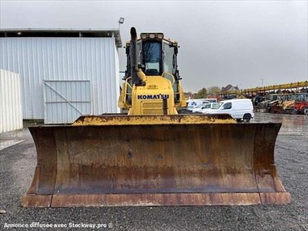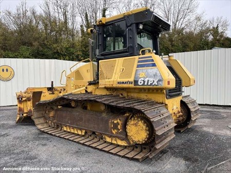 Ce bulldozer de la marque Komatsu est le modèle D61PX-23 de 2014. Longueur : 5 M 50 Largeur : 2 M 99 Hauteur : 3 M 18 Poids : 18.600 kg. Largeur chenilles : 860 MM Longueur lame dépliée : 3 M 85 Longueur lame repliée : 2 M 95 Lame pliable Caméra de recul Climatisation Moteur Komatsu SAA6D107E-2 de 126 kW (170 ch) 6.141 Heures