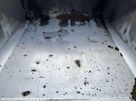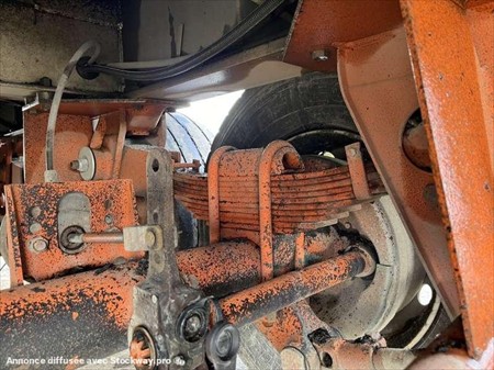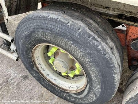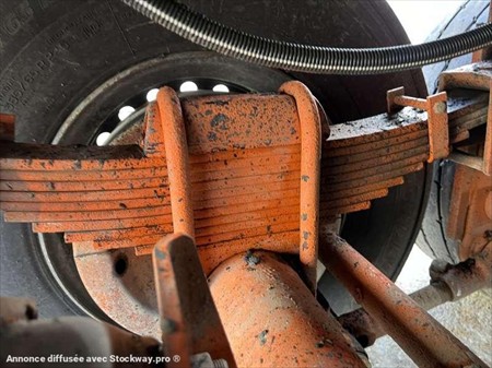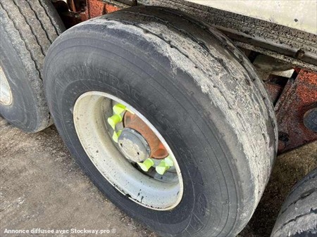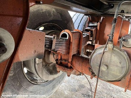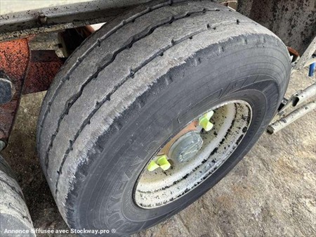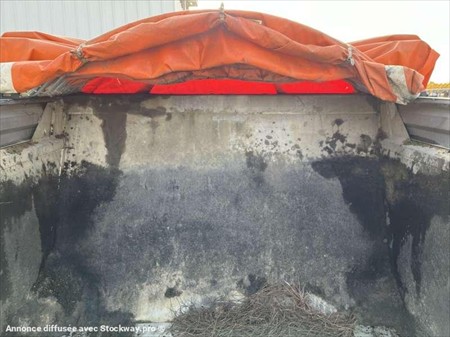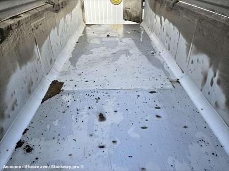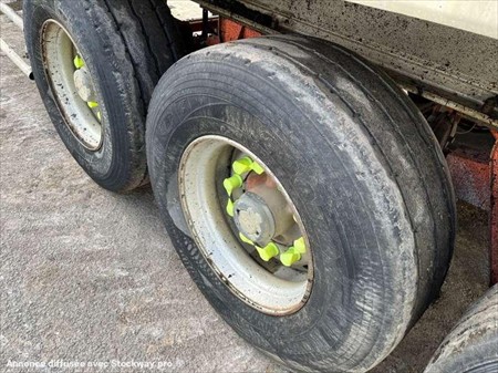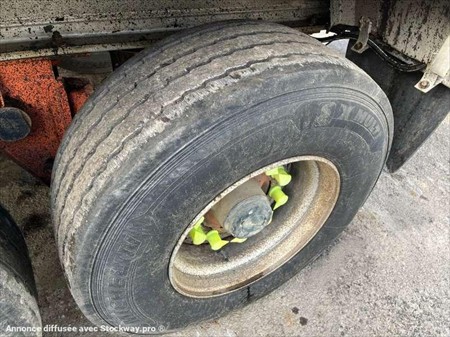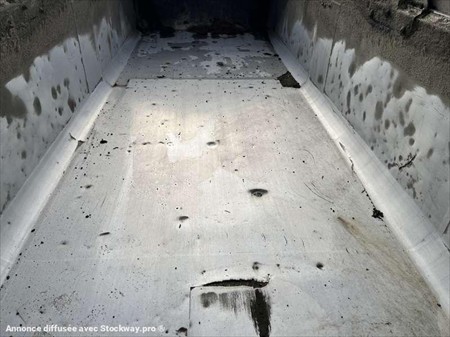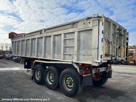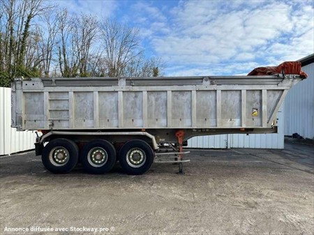 Cette benne de la marque General Trailer de 3 essieux est de 2001. Longueur : 8 M 60 Largeur : 2 M 50 Hauteur : 3 M 04 Poids à vide : 5 T PTAC : 34 T Charge utile : 29 T Taille pneus : 385/65 R 22.5 Suspensions à lame Bâche de la marque Marcolin Benne et châssis Aluminium