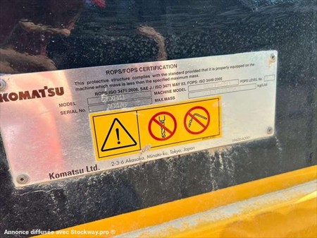 Cette chargeuse sur pneus de la marque Komatsu est le modèle WA600-E80 de 2022. Longueur : 12 M 38 Largeur : 3 M 80 Hauteur : 4 M 50 Poids : 56070 kg Taille pneus : 35/65-33-36 PR Capacité godet : 7,8 M3 Graissage automatique Climatisation Cabine ROPS Hauteur de déversement Max : 5 M 18 Moteur Komatsu SAA6D170E-7 de 396 kW (538 ch) 3779 heures