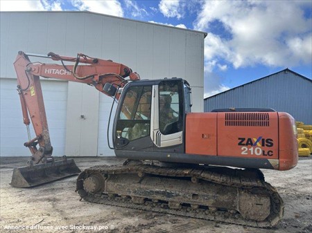 Pelle sur chenilles HITACHI type ZX210LC-3 Année : 2011 Heures : 9400 Poids : 22 t - Largeur : 2.99 m Flèche à volée variable Moteur Isuzu AI 4 HK 1 X (122 kW) Coupleur hydraulique + 2 godets