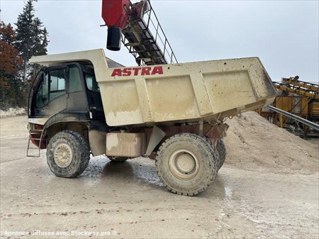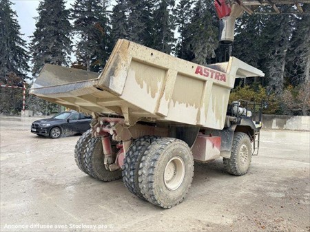 Tombereau rigide 4X2 ASTRA type RD28 Année : 2007 Heures : 5000 Poids : 17.5 t Longueur : 7.38 m - Largeur : 3.3 m - Hauteur : 3.75 m Capacité benne : 16.5 m³ Charge utile : 28 t Moteur Iveco 8210-22 (223 kW)