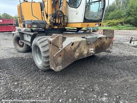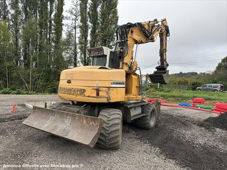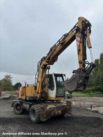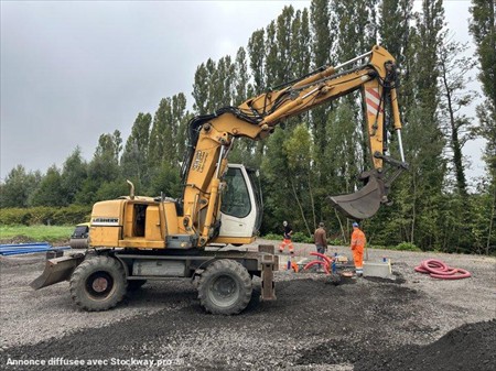 Pelle à pneus LIEBHERR type A312 LITRONIC Année : 2004 Heures : 10700 Poids 14 t Longueur : 8.2 m - Largeur : 2.55 m - Hauteur : 3.12 m Flèche à volée variable + bras déport - Lignes hydrauliques Lame + stabilisateurs Graissage Coupleur hydraulique + godets