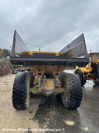 Tombereau articulé VOLVO type A25C 6X6 Année : 2001 Heures : 15200 Moteur neuf : 300 heures Poids : 17.77 t Pneumatiques standard : 23.5 R 25 Réhausses Capacité benne : 15 m³ Charge utile : 25 t Moteur Volvo TD73KCE (187 kW)