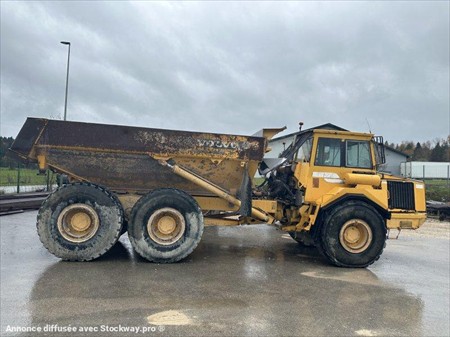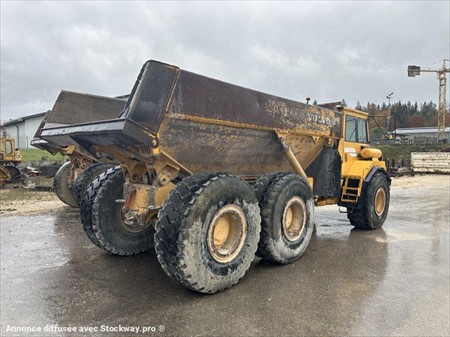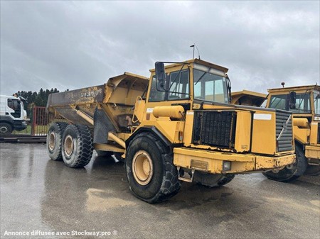 Tombereau articulé VOLVO type A25C 6X6 Année : 1999 Heures : 18000 Poids : 17.77 t Pneumatiques standard : 23.5 R 25 Capacité benne : 13.5 m³ Charge utile : 22.5 t Moteur Volvo TD73KCE (187 kW)