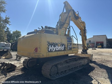 Pelle sur chenilles KOMATSU type HB215LC-2 HYBRID Année : 2016 Heures : 7300 Poids : 22.7 t Flèche à volée variable - Lignes hydrauliques petit débit et grand débit Tuiles de 600 mm Attache rapide hydraulique réversible Godet de terrassement et curage