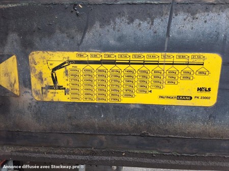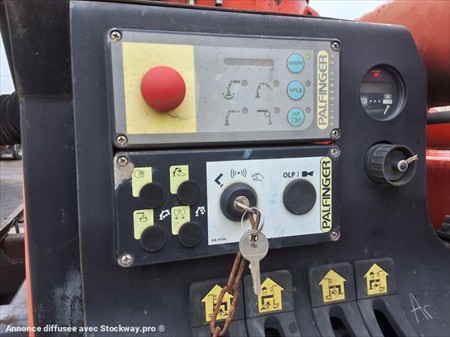 GRUE PALFINGER PK23002 RADIO COMMANDE 6 FONCTIONS 4 RALLONGES HYDRAULIQUES + 2 MECANIQUES - ROTOR HYDRAULIQUE - 4 BEQUILLES HYDRAULIQUES - LEVE 1520KG A 12,20M OU 850KG A 16,70M - PLATEAU LONGUEUR 7,30M - CLIMATISATION - FREIN ECHAPPEMENT