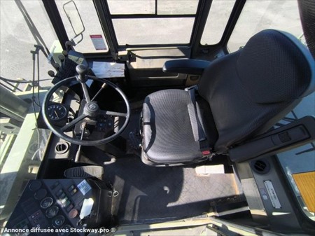 Valmet TD1612 Année : 1994 Masse à vide : 26 Tonnes Hauteur Maximum : 3.200 M Mât Triplex Moteur VOLVO TURBO 6 cylindres Puissance : 157 kW Energie : GO 4 Roues Motrices Capacité de chargement 16.0 Tonnes Nombre d’heures : 4170 H compteur Pneus AV jumelés 12.00-20 Pneus AR 12.00R20 Levée libre Tablier à déplacement latéral Positionneur de fourches Rotation tablier 35° Longueur des fourches : 2.5 m Largeur : 2.50 m Hauteur : 3.10 m Matériel en très bon état !