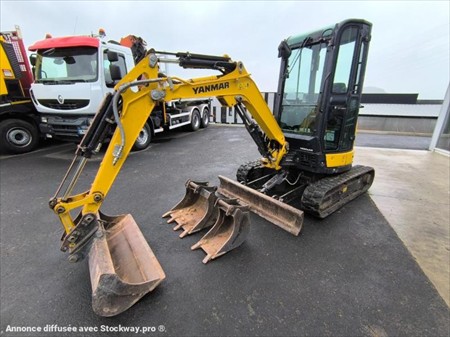 Année : 2021 Marque : Yanmar Modèle : VIO 23-6 Nombre d’heures : 1268.6 H au compteur Voie variable 140 cm replié, 156 cm déplié Cabine Moteur Yanmar Puissance : 14.3 KW Poids : 2.4 Tonnes Vendue avec 3 godets : 120 cm, 60 cm et 30 cm Patin 250 M/M Attache rapide mécanique Déport pied de flèche Vitre arrière sera neuve Matériel en très bon état !
