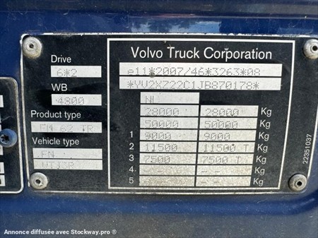 longueur benne maximum 7m50 véhicule en parfait état de fonctionnement renouvellement de parc véhicule entretenu chez volvo disponible Bordeaux