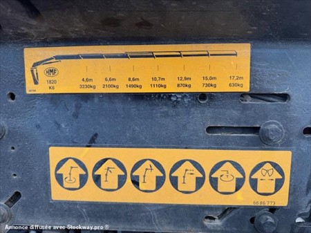 TRACTEUR + GRUE MAN TGS 18.480 Année : 30/06/2015 543 530 Kms, kilométrage d'origine affiché au compteur. Poids à vide : 10T559 PTAC : 19T PTRA : 44T Grue de marque HMF 1820-K6 Capacitée de levage maximum : 3 230 kg Longueur maximum : 17.20 m Levée en bout de flèche : 630 kg Radiocommande Contrôle technique valide 1 an Pour plus de renseignements merci de nous contacter au 06.17.29.20.50 Cordialement GOVIN Stéphane