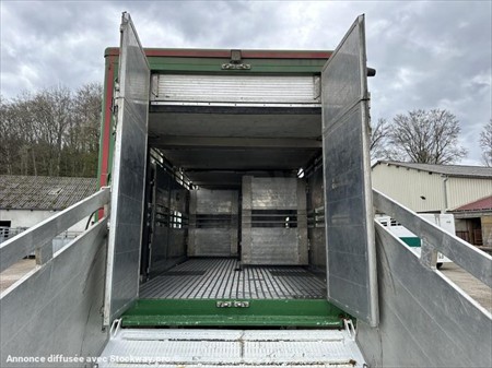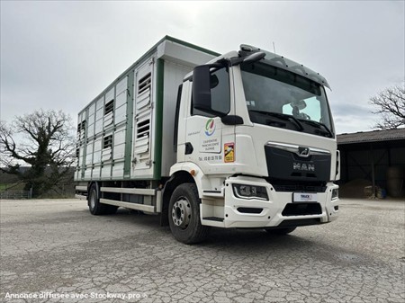 MAN TGM 15.290 Bétaillère Date de mise en service : 19/01/2023 Km : 85 000 Chassis : WMA16DZZ7PY446480 PTAC : 15 000 kg / P.V : 9 060 kg Moteur 290 cv – Euro 6 Boite de vitesse manuelle 8 rapports Blocage de différentiel Suspensions essieu avant : Lames Suspensions essieu arrière : Pneumatiques Pneumatiques avant et arrière : 305/70 R19.5 Régulateur de vitesse Commande multimédia au volant Kit Bluetooth appel téléphonique Carrosserie : Caisse 2ème châssis reconditionnée à neuf 8 Bovins Double étage pour cochon et mouton Dimensions : Hauteur (position bovins = étage position hauteur) : 1m75 sous renfort / 1m85 au plus haut Longueur : 6m45 Largeur : 2m45 Etage verrouillage intermédiaire (à partir du bas) : 1m10 / 1m20 / 1m30 Tous nos véhicules ne sont pas visibles sur parc, contactez-nous pour connaitre la localisation et convenir d’un rendez-vous. Solutions de financement clés en main avec nos partenaires de confiance. Certains véhicules peuvent encore être stickés, nous assurons l’anonymisation par logiciel. Reprise de votre véhicule possible – contactez-nous !