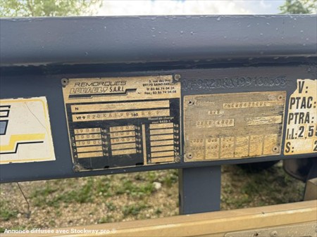 REMORQUE LOUAULT PORTE CAISSONS Date de mise en service : 17/12/2009 Chassis : VF9R2DKA199160565 PTAC : 19 000 kg / PV : 4 200 kg 2 essieux Pneumatiques : 265/70 Suspensions pneumatiques Triple verrouillage Attache rapide Flexible neuf Tous nos véhicules ne sont pas visibles sur parc, contactez-nous pour connaitre la localisation et convenir d'un rendez-vous. Solutions de financement clés en main avec nos partenaires de confiance. Certains véhicules peuvent encore être stickés, nous assurons l’anonymisation par logiciel. Reprise de votre véhicule possible - contactez-nous !