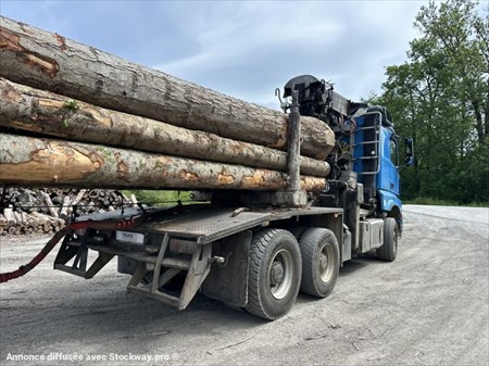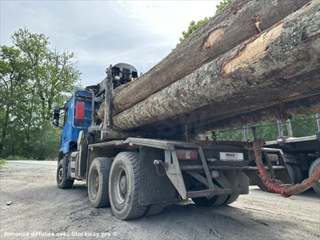 Ensemble MERCEDES Arocs 6X4 3363 Grue LOGLIFT F251580 + Arrière train forestier DOLL Date de mise en service : 21/12/2018 Châssis : WDB96441610263439 Km : 445 000 / Heures moteur : 13 500 PTAC : 26 000 kg / PTRA : 44 000 kg / PV : 15 700 kg Empattement : 3900 mm Moteur 630 cv - Euro 6 Boite de vitesse automatique Ralentisseur hydraulique : +250 kg Pneumatiques avant : 385/65 Pneumatiques arrière : 315/80 Suspension avant et arrière : Lames Pont avec réducteurs Cabine L ClassicSpace Siège conducteur cuir chauffant Couchette inférieur Ordinateur de bord Climatisation Réfrigérateur Réservoir côté gauche 510L Feux LED Caméra de recul Grue LOGLIFT F251580 Année : 2018 Numéro de série : BF251S000132 Arrière train forestier Doll PTAC : 34 000 / PV : 5 500 kg Date de mise en service : 10/05/2012 Châssis : W09M10336C0D04118 Essieux directionnels BPW Pneumatiques : 315/70 Suspension : Lames Entretien suivi par Mercedes Contrôle technique des véhicules valable jusqu’en janvier 2026 Tous nos véhicules ne sont pas visibles sur parc, contactez-nous pour connaitre la localisation et convenir d’un rendez-vous. Solutions de financement clés en main avec nos partenaires de confiance. Certains véhicules peuvent encore être stickés, nous assurons l’anonymisation par logiciel. Reprise de votre véhicule possible – contactez-nous !