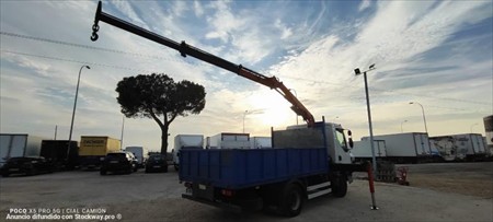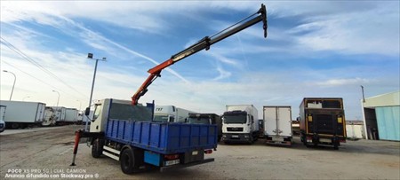 CABINA CORTA, A/A, CRUISER, RADIO , ORDENADOR DE A BORDO, FRENO MOTOR, TACOGRAFO ANALOGICO, SUP. NEUMATICA, MANUAL DE 6 VELOC., GRUA PALFINGER PK-5000 CON 2 HIDRAULICAS, ALCANCES: 3,4m.: 1.310 kg., 5,2m.: 840 kg., 6,9m.: 620 kg., RUEDAS:235/75 R 17,5, DEL AL 70%, TRAS. AL 50% CAJA DE 4,05 X 2,18 X 0,70
