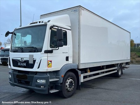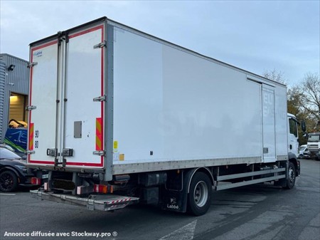 MAN TGM 18.290 FOURGON 19T + HAYON RETRACTABLE 1.5T 30/04/2018 189.360 KMS CARROSSERIE: Caisse LABBÉ Dimensions intérieur : 8.60m x 2.45m x 2.50m hauteur Porte latéral coulissante côté passager : 1.10m x 2.30m Hayon Dhollandia repliable 1.5T EQUIPEMENTS : Vitres électrique Rétroviseurs électrique chauffant Fermeture centralisé à distance Aide démarrage en côte Alerte de franchissement de ligne blanche Régulateur de vitesse Blocage de différentiel Caméra de recul Pour tout renseignement complémentaire, merci de contacter Antoine au 06.13.90.09.42 ou David au 06 70 37 10 83, ou rendez-vous sur notre site internet www.selectpoidslourds.com