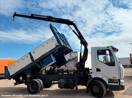 Camión rígido basculante volquete de 4,30 mts. Equipa grúa HIAB 099 B-2 DUO, con mando a distancia. Puede a 2,7 Mts con 3.250 kg, a 4,1mts con 2.160, a 5,7 mts con 1.540 y a 7,6 mts con 1.140 kg. Proviene de empresa de reparto de materiales de construcción. Buen estado general.