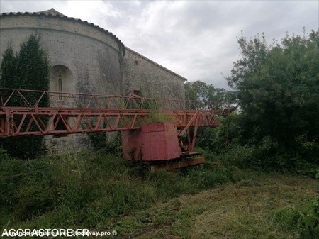 Grue ESTEVE révisée, démontée et prête à charger sur camion plateau Hauteur : 12 m Flèche : 14 m Capacité de levage : 1,2 t à 1 m, 750 k à 7 m et 350 k à 14 m. Poids du Ballast : 3 tonnes Moteur BERNARD à essence Notice de montage de la structure + seau à béton + benne à béton environ 80 L