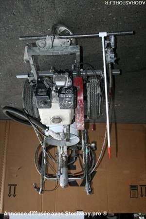 Machine de traçage Airless – système hydraulique Permet d’assurer les travaux de marquage d’une ville, d’un parking, ... Machine de marquage qui peut utiliser des peintures à solvant ou à l’eau. Moteur HONDA GX 160 – 5,5 CV à essence Pompe Airless hydraulique à piston de 7,5 lt/mn. Pression maximale 207 bars L’utilisation du pistolet est double : sur son support ou manuel Machine révisée Type de matériel