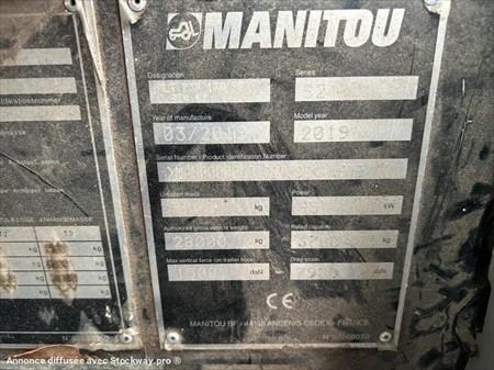 Manitou MLT 737-130 PS+ Numéro de stock : 7696 Marque : Manitou Modèle : MLT 737-130 PS+ Année : 2019 Heures : 2974h Numéro de série : MAN00000L01019392 Poids : 7.7T Capacité de levage : 3.7T Hauteur : 2m38 Largeur : 2m39 Longueur : 4m97 Hauteur de levage : 7m Pneus avant : 460/70R24 Pneus arrière : 460/70R24 Usure pneus avant : 80% Usure pneus arrière : 60% Roues motrices : 4RM Moteur : 4 cylindres Deutz 130CV Accessoires : - Fourche à palette - Monolevier - Ligne auxiliaire - Climatisation - Siège pneumatique Tarif vendu dans l’état : 53 000€ H.T (TVA à 20% récupérable pour les professionnels) Possibilité de matériel vendu révisé, vidangé et garantie pour un supplément de 3 000€ HT. Nous sommes une entreprise multimarques spécialisée dans le négoce de matériels TP et Agricoles dans les Deux-Sèvres. Une large gamme de produits est disponible sur notre parc : Mini pelle, chariot télescopique, dumper, remorques et autres matériels divers. Nous pouvons assurer des livraisons dans toute la France.