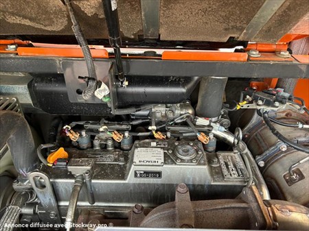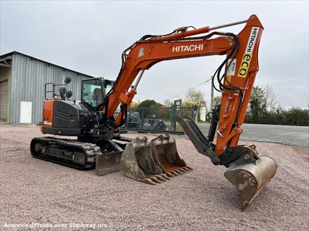 Hitachi ZX85USB-6 Numéro de stock : 7746 Marque : Hitachi Modèle : ZX85USB-6 Année : 2021 Heures : 1299h Numéro de série : HCMDER50C0010716 Poids : 8650kg Hauteur : 2m55 Largeur : 2m26 Longueur : 6m82 Chenilles : Caoutchouc Usure chenille droite : 30% Usure chenille gauche : 30% Nombre de godets : 3 2 Vitesses : Oui Moteur : Yanmar 4 cylindres Accessoires : - Pouce hydraulique - 2 lignes auxiliaires - Climatisation - Attache rapide hydraulique Tarif vendu dans l’état : 54 000€ H.T (TVA à 20% récupérable pour les professionnels) Possibilité de matériel vendu révisé, vidangé et garantie pour un supplément de 3 000€ HT. Nous sommes une entreprise multimarques spécialisée dans le négoce de matériels TP et Agricoles dans les Deux-Sèvres. Une large gamme de produits est disponible sur notre parc : Mini pelle, chariot télescopique, dumper, remorques et autres matériels divers. Nous pouvons assurer des livraisons dans toute la France.