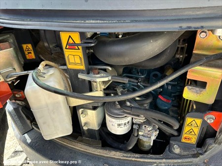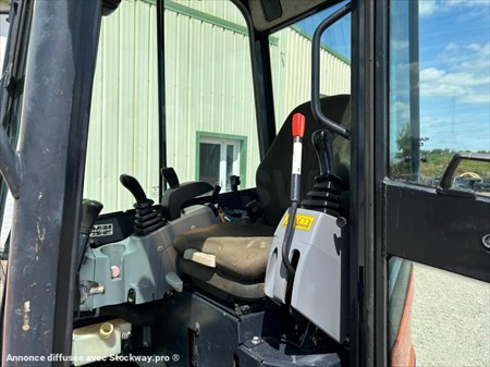 Kubota U27-4 Numéro de stock : 7532 Marque : Kubota Modèle : U27-4 Année : 2018 Heures : 2566h Numéro de série : WKFRGH1100Z061813 Poids : 2660kg Hauteur : 2m42 Largeur : 1m50 Longueur : 4m10 Chenilles : Caoutchouc Usure chenille droite : 40% Usure chenille gauche : 40% Godets : 120cm / 60cm / 30cm Nombre de godets : 3 2 Vitesses : Oui Moteur : Kubota 3 cylindres Accessoires : - Attache rapide mécanique - Ligne auxiliaire Tarif vendu dans l’état : 22 500€ H.T (TVA à 20% récupérable pour les professionnels) Possibilité de matériel vendu révisé, vidangé et garantie pour un supplément de 2500€ HT. Nous sommes une entreprise multimarques spécialisée dans le négoce de matériels TP et Agricoles dans les Deux-Sèvres. Une large gamme de produits est disponible sur notre parc : Mini pelle, chariot télescopique, dumper, remorques et autres matériels divers. Nous pouvons assurer des livraisons dans toute la France.